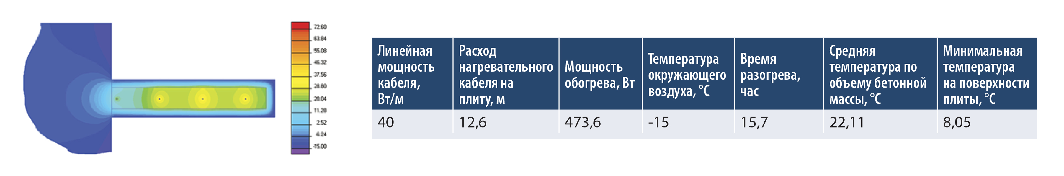 • Равномерный прогрев кабеля до 60 °С, без кипения и выгорания проводов.