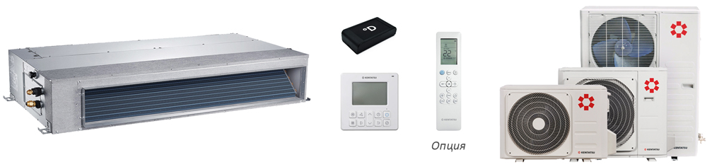 Канальный кондиционер инверторного типа Kentatsu с технологией Full DC Inverter (модели 35, 53, 70) и DC Inverter (модели 105, 140, 165) — гарантия надежности и комфортного и экономичного использования. Устанавливаются скрытым способом в подвесную потолочную конструкцию. Применяются в помещениях различного назначения (гостиницы, медицинские учреждения, торговые залы и др.). Имеют возможность организации подмеса свежего воздуха, а также подключения дополнительных воздуховодов для кондиционирования соседних помещений. Оснащен встроенным модулем Wi-Fi для удаленного управления.