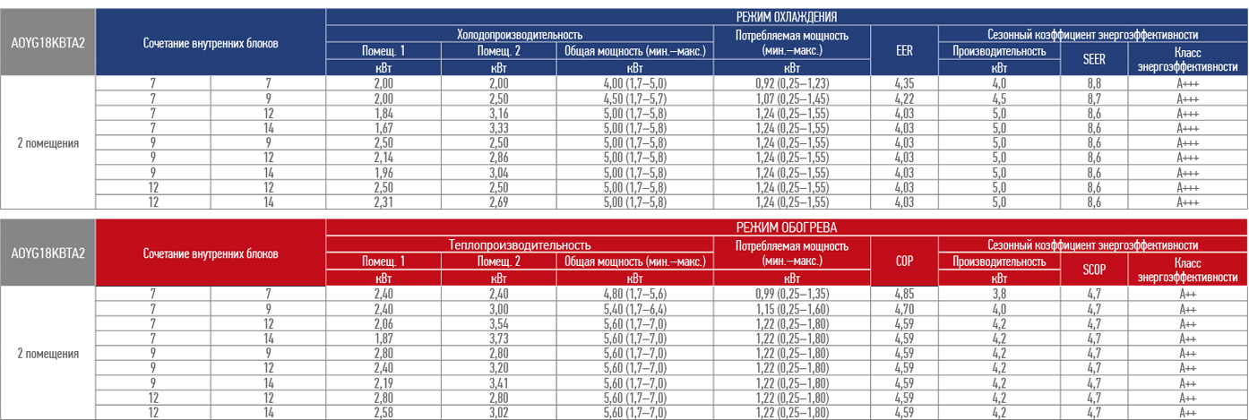 Внутренние блоки одновременно могут работать только в одном режиме — охлаждения или нагрева, но в каждом помещении можно задавать и поддерживать индивидуальные параметры воздуха при помощи индивидуального пульта управления.