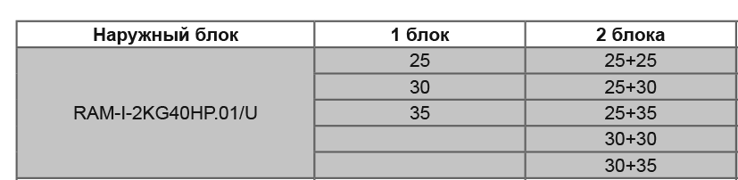 Данная модель наружного блока рассчитана на подключение 2 внутренних блоков и имеет общую площадь охлаждения до 40 кв.м.