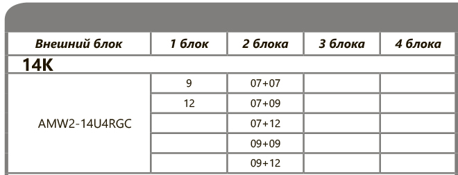 Рассчитан на подключение 2 внутренних блоков. Общая площадь охлаждения до 40 кв.м, комбинации внутренних блоков подбираются индивидуально. Внутренние блоки можно подобрать здесь.