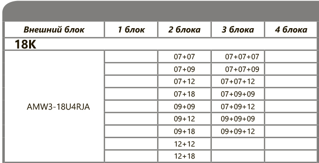 Рассчитан на подключение 3 внутренних блоков. Общая площадь охлаждения до 55 кв.м, комбинации внутренних блоков подбираются индивидуально. Внутренние блоки можно подобрать здесь.