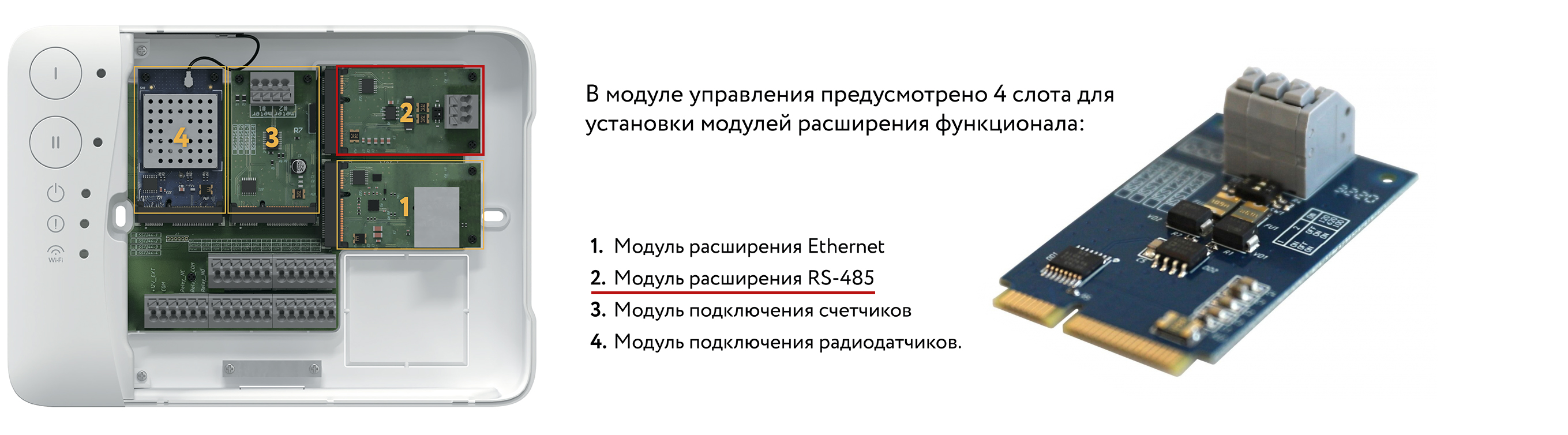 Служит для интеграции в автоматизированные системы управления с поддержкой протокола MODBUS RTU.