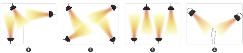 2. При установке тепловентиляторов в углах струю воздуха нужно направить в центр помещения.