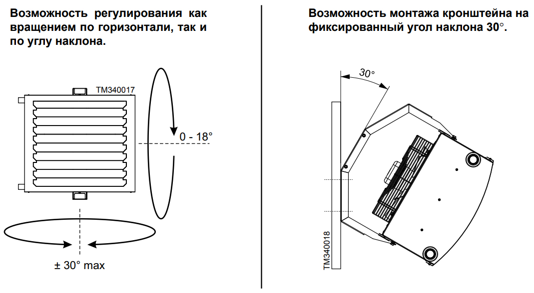 - Поворотные жалюзи, позволяющие направлять потоки теплого воздуха в нужную область помещения.