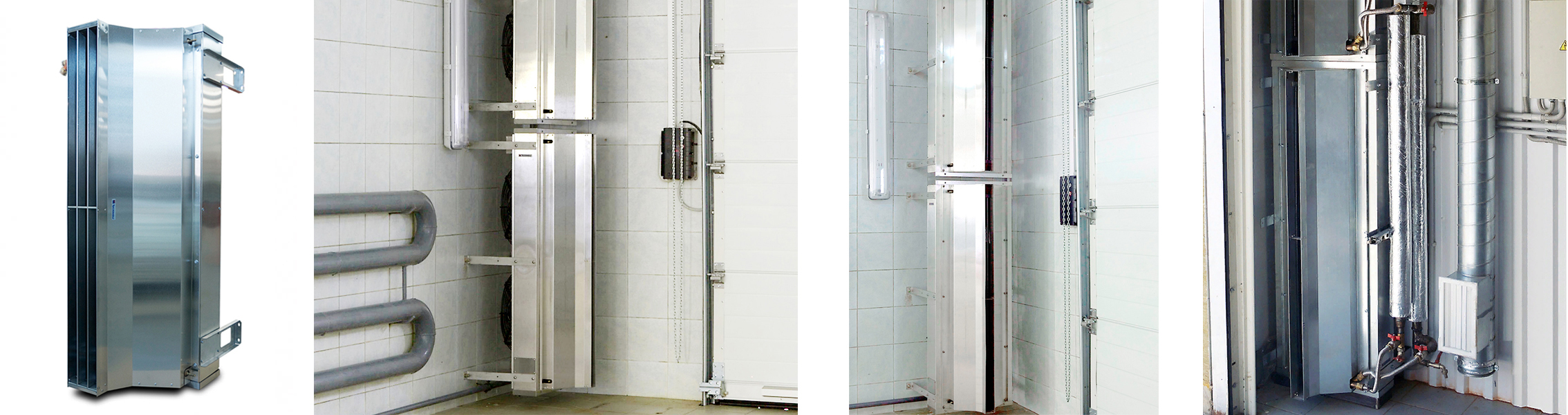 Промышленная тепловая завеса шиберующего (отсекающего) типа из нержавеющей стали с защитой корпуса IP54 (допускается капельная влага, туман). Устанавливается внутри помещения, горизонтально над проемом или вертикально, сбоку от него, как можно ближе к краю. При большой ширине проема можно располагать сразу несколько завес вплотную друг к другу и управлять ими с одного пульта. Применяется в складских помещениях, гаражах, производственных предприятиях, ангарах, самолетных и вертолетных площадках, автомойках и других помещениях большой площади.