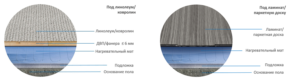 Под ламинат, Под паркет, Под линолеум, Под ковролин