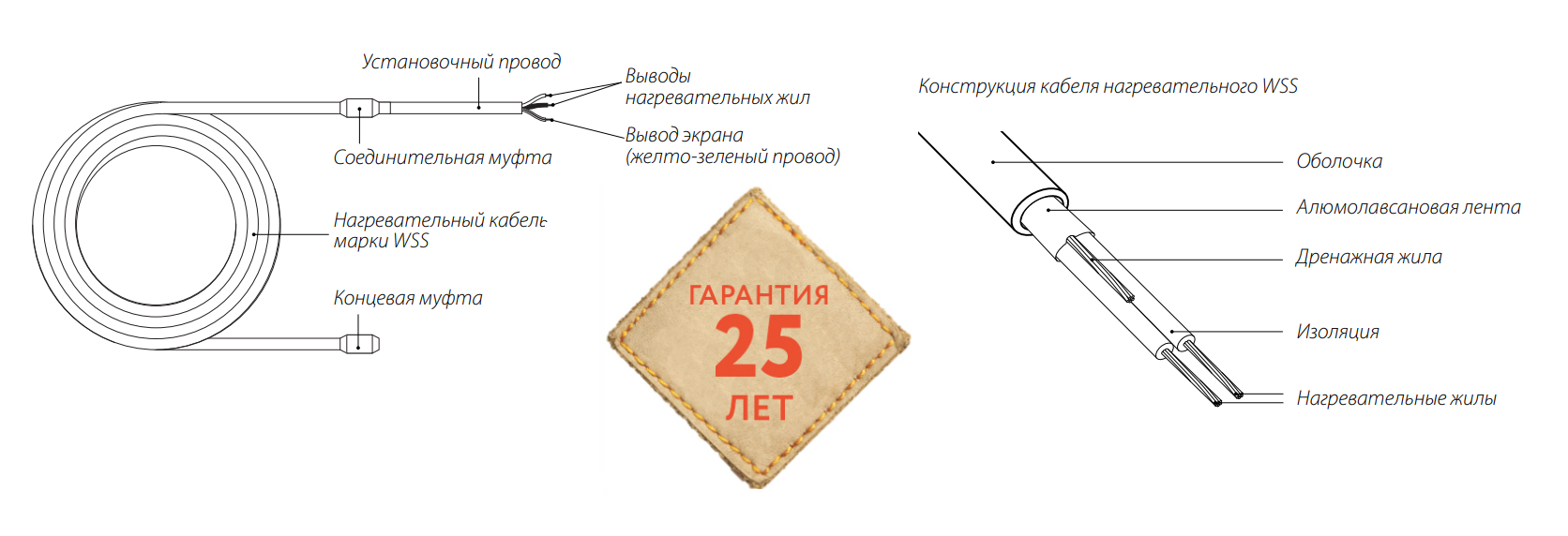 Резистивный кабель — имеет одинаковую мощность нагрева по всей длине. Регулирование мощности осуществляется с помощью термостата.